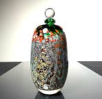 - Maxence Parot - Vaas - Unieke fles met gouden en zilverenUnieke glazen flesfles uit frankrijk, model flacon unique couleurs or et argent, 16 cm hoog, diameter 7 cm, gewicht 720 g, in vrijwel nieuw, ongebruikt staat. Uniek flesje van 16 cm hoog door de frans