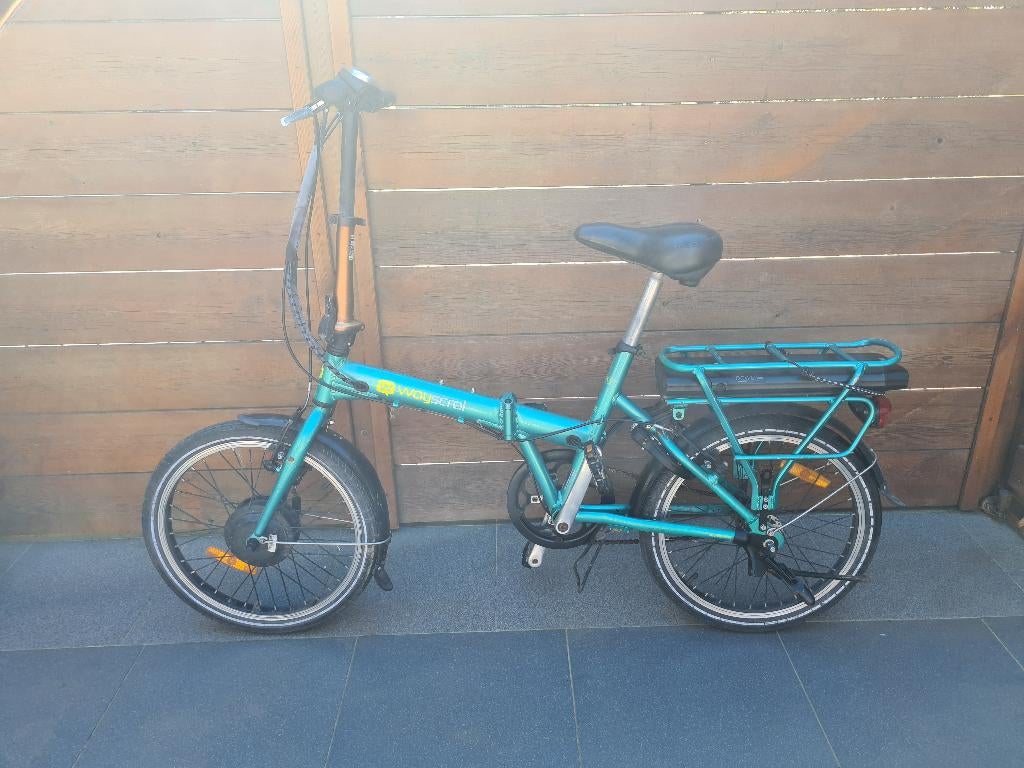 - vélo pliant électriqueVélo pliant électrique wayscral 36v/250w. Le vélo roule bien, la batterie est bonne et il est livré avec un chargeur. Peut être récupéré à ypres.Utilisé Enlèvement