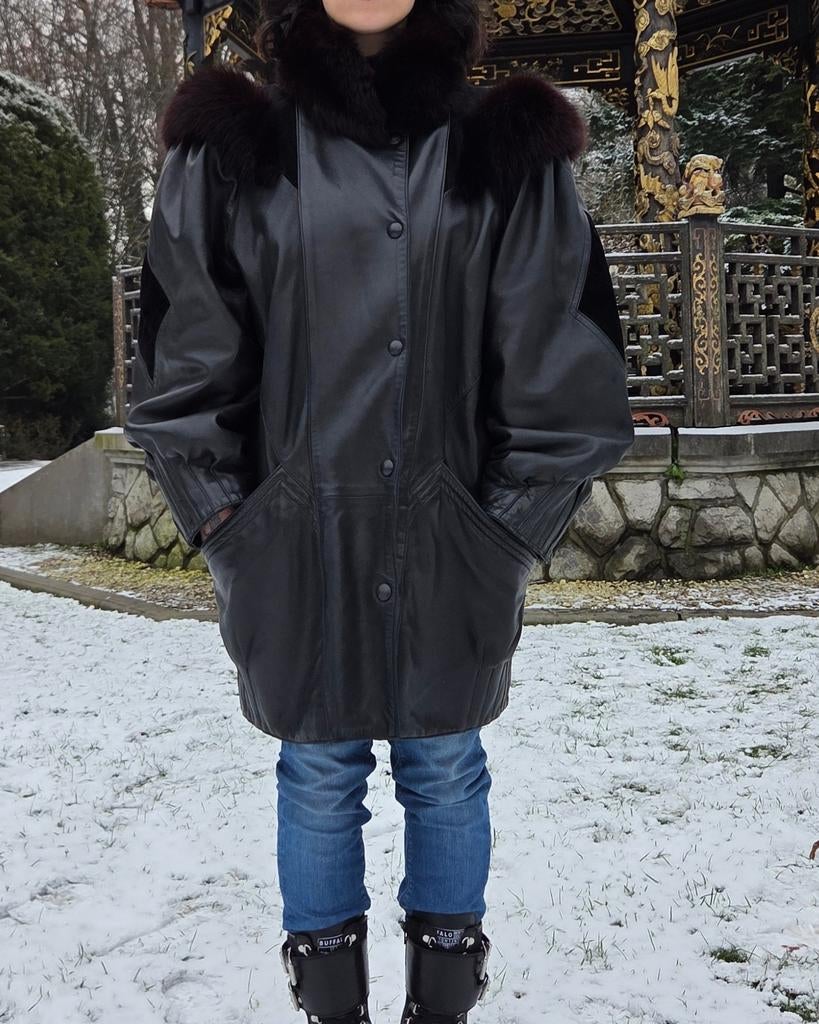 - Manteau en cuir et fourrureJe vends cet objet parce que j'ai trop de vestes en cuir particulieres. J'ai bien profité de ce manteau je suis prête à m'en séparer. Style année 80 avec col fourrure et épaulettes fourrurEnlèvement ou Envoi