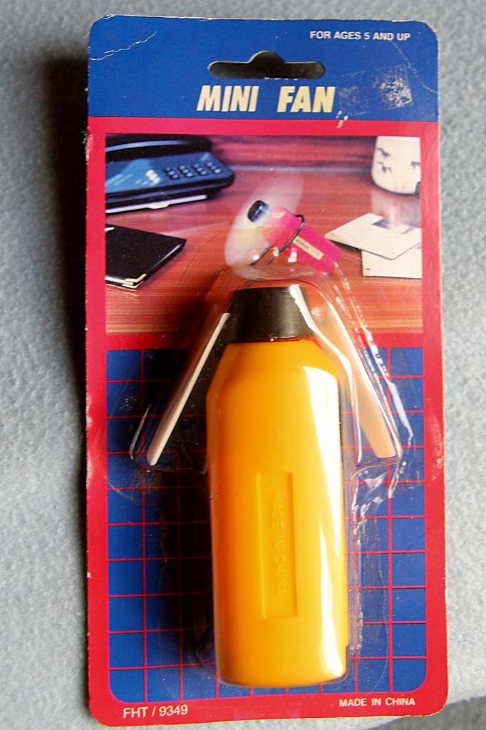 - mini-ventilateurMini ventilateur vintage des années 80, à piles, neuf, dans son emballage d'origine 2 pieces; rouge et jauneEnlèvement ou Envoi