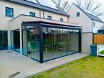 Maak je overkapping of veranda dicht met onze stockmaterialen. Pvc kozijn, kozijnen, pui, puien, raam, ramen, deur, deuren, schuifraam, schuiframen vliegenramen, blauwe steen dorpels, marmercomposiet