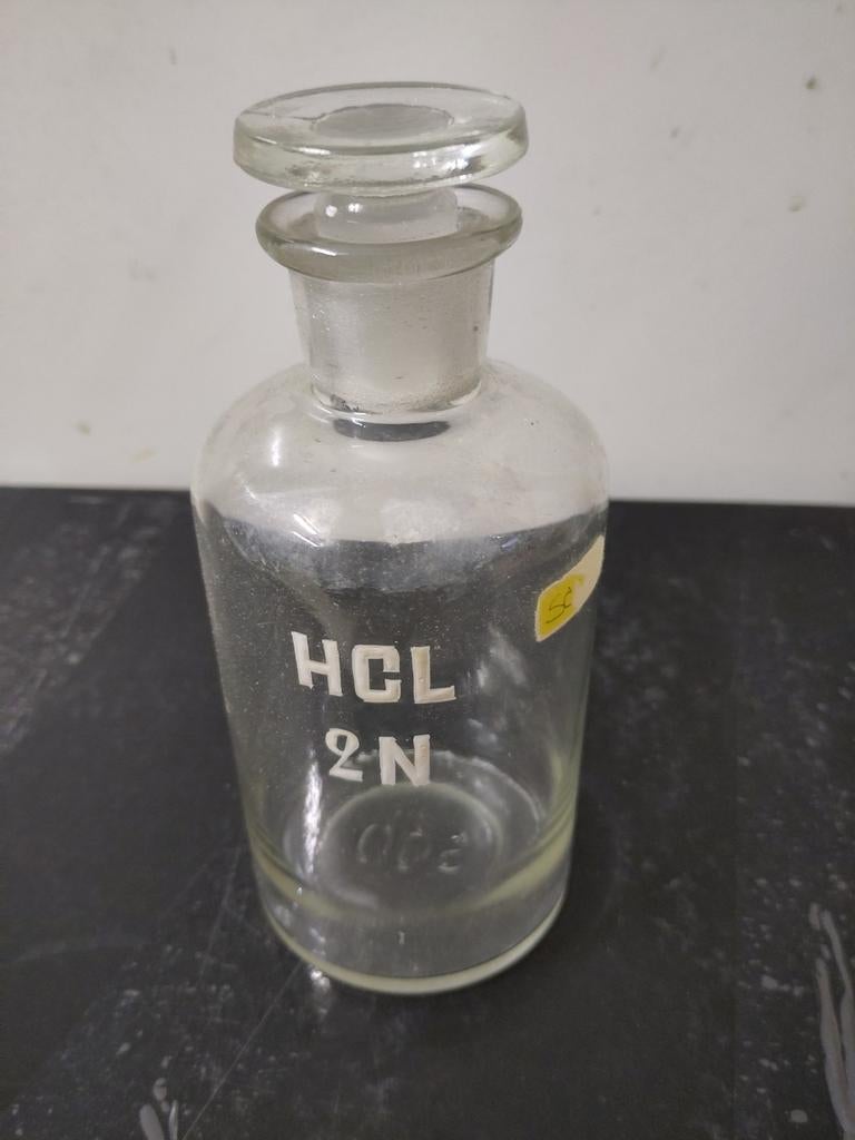 - Flacon de laboratoire Vintage HCl 500 ml + bouchon en verreFlacon de laboratoire en verre authentique avec bouchon poli. Inscripción : hcl 2n. Bel objet de décoration au look scientifique. Voir aussi mes autres annonces pour plus de verrerie et d'équipemeEnlèvement