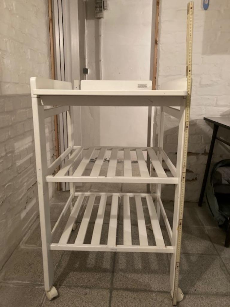 26 sept. 21KarelSchilde - verzorgingstafelVerzorgingstafel op wieltjes. Er past bovenaan gemakkelijk een verzorgingskussen. Met de2 schappen onderaan is er voldoende plaats om al het noodzakelijke binnen handbereik te hebben. Afmetingen: - 93Utilisé Enlèvement