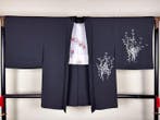 15 avr. 26SasadidiMerbes-Le-Chateau - SANS RÉSERVE - Haori - veste kimono - peinte à la main -Haori en soie véritable peint à la main, japon, période shwa, en excellent état, sur fond noir avec motif botanique blanc et orange et doublure à motif vase de fleurs ou d’oiseaux; longueur sous le co