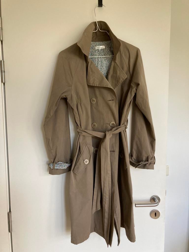 - Trench tendance Pauline BSuperbe trench printemps/été hyper tendance. Léger et fluide teinte kaki clair doublure partie supérieure, revers ceinture des manches et poches à motif fleuri style liberty’s très élégant taille 3 (Porté Enlèvement ou Envoi