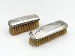 - Balai à miettes (2) - Argent 875 (84 Zolotniki)Paire de brosses à vêtements en argent .875 Du début du xxe siècle, chacune ornée de motifs floraux art nouveau gravés à la main et l’une avec monogramme, dimensions 8,5 × 2,8 cm et 7,2 × 2,5 cm, mont