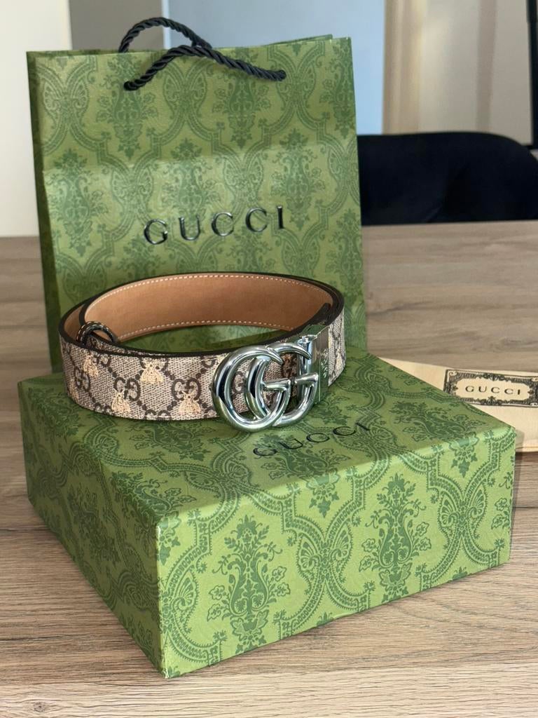 2 avr. 26ELS’APESSaint-Servais - Ceinture Gucci - taille 80 - Authentique - Excellent étatCeinture originale en cuir marron gucci avec boucle g tressée. Code de modèle 497117, fabriqué en italie. Vendu avec le sac à poussière d'origine. ÉTat : à peine utilisée boucle en très bon étatComme neuf Enlèvement ou Envoi