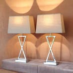Aujourd'huiPub au topLocasunToute la Belgique - Lamp (2) - Chic & Design - Paris - Verzilverd metaalPaar elegante lampen met kruisvormige, zilverachtig metaallook in een eigentijds ontwerp, model chic & design - paris, afkomstig uit frankrijk, in gebruikte staat met lichte ouderdomssporen, werke