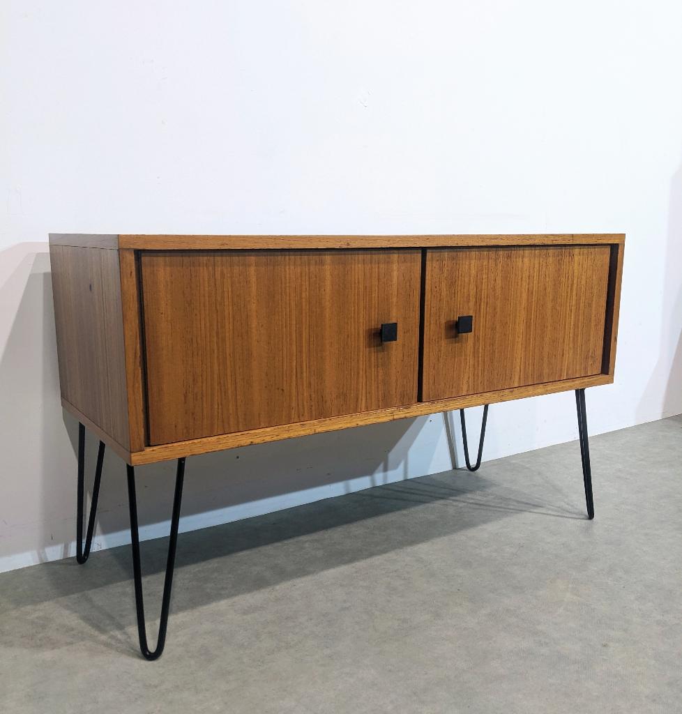 4 mars 26inboedelonlineLoon op Zand, NL - Retro Vintage DressoirRetro vintage stijl dressoir vintage dressoir of lowboard in de mid-century modern stijl, waarschijnlijk daterend uit de jaren 50 of 60. Afmeting (bij benadering) lengte = 135 cm hoogte = 68 cm diepteUtilisé Enlèvement