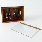 - H. Hooijkaas - Miniatuurkamer - Figurine - Argent 835Miniature en argent dans une vitrine en bois avec porte coulissante en verre, fabriquée par h. Hooijkaas – miniatuurkamer née aux pays-bas, dimensions 28,5 × 39,5 × 19 cm, poids total 3042,2 g (poids