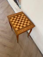 - Jeu déchecs - BoisTable d'échecs en bois d'italie, estimée des années 1950–1960, avec un placage en intarsia, une boîte à musique suisse sous la table qui joue lorsque l'on ouvre le volet, livrée avec un en