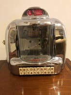 - Automaat - 3W1 - Seeburg 3W1 JukeboxSeeburg 3w1 wallbox selector, een chrome wandgemonteerde jukebox uit chicago, gedateerd 1948–1951, 32 × 31 × 12 cm, gewicht 10 kg, zilver, getest en werkend met lichte ouderdomsbeschadigingen. Seeburg