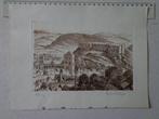 - Gravure de Geo Warzée au bister Vue panoramique de HuyEau-forte typique de l'artiste wallon geo warzée. La gravure non encadrée est signée au crayon dans le coin inférieur droit de geowarzée et intitulée « huy » dans le coin inférieur gauche. Il a ét