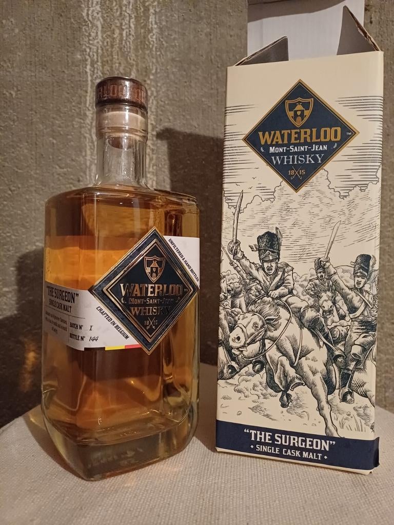 - Whisky Waterloo. Premier lot/mise en bouteille !Premier lot de whisky de la distillerie de waterloo. Single malt the surgeon. Bouteille en bon état, bon niveau de remplissage, voir photo. Enchérir pour de la valeurEnlèvement ou Envoi