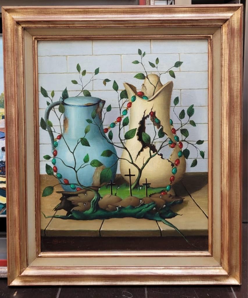21 févr. 26Lori WollensPulle - KAREL WOLLENS / BEELDJE & APPELS / OLIEVERF / 41x31cm KADERKarel wollens (1912-1989). Beeldje en appels/statuette et pommes. Olieverf op paneel (hardboard)/huile sur panneau. Gesigneerd/signé. Goede staat/bon état. Paneel/panneau: 35x25cm. Kader/cadre: 41x31cEnlèvement ou Envoi