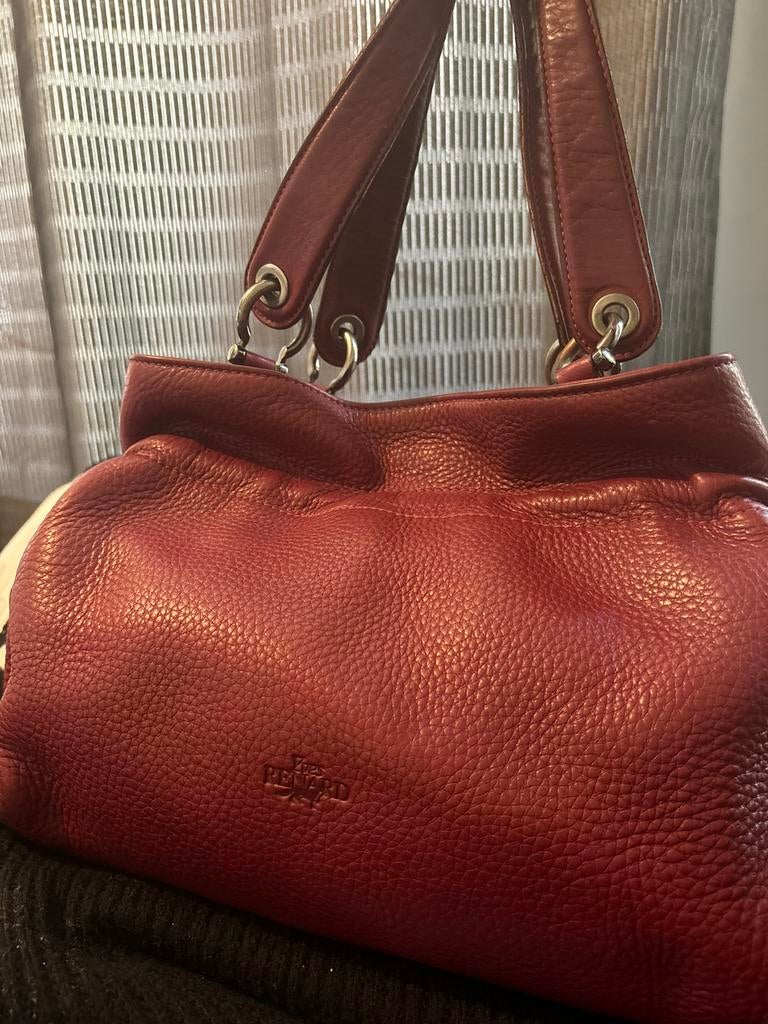 20 oct. 25ErikaLede - Sac à main de la marque Yves Renard en cuir rougeDimensions : 32 cm x 39 cm x 14 cm très belle doublure noire avec le logo de la marque multiples poches internes attache clé inclu et également en cuir enlèvement sur asseComme neuf Enlèvement