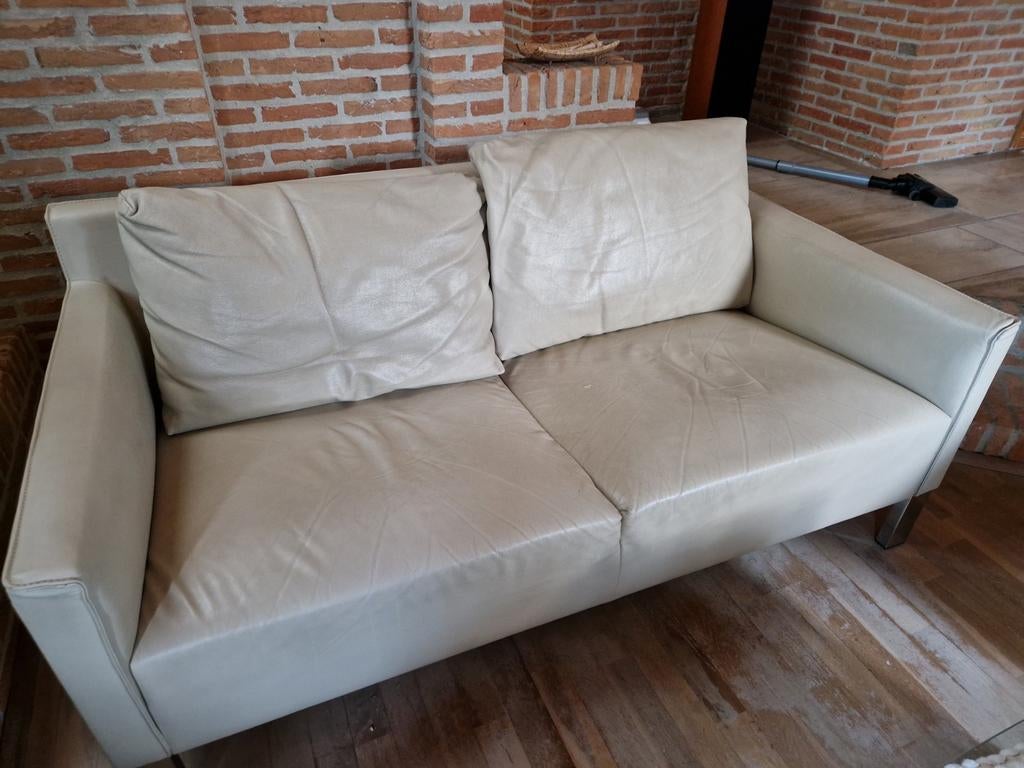 10 mars 26CarinetiersKoekelare - Prachtig lederen tweezit van topmerk DurletZetel in crèmekleur in topleder van merk durlet l160 d 90. Combineerbaar met een grote cognackleurige canapé van hetzelfde typeUtilisé Enlèvement Deux personnes