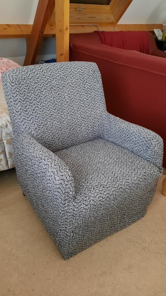 28 mars 26Lauren MaesOudenaarde+Deel Ooike - Zetelhoes (Meubelhoes Josefien 1-zits antraciet)- zo goed als nieuw. - Kleur: antraciet grijs. (Kleur op fot draagtas klopt niet!) - Zeer rekbare/elastische stof zodat het op bijna ieder model zetel kan geplaatst worden. - Zie: "meubels.com/prComme neuf Enlèvement ou Envoi