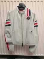 Veste dainese en cuir beige avec bandes rouges et bleu marine en parfait état, très peu utilisée très belle qualité taille 44, correspond à la taille m (devenue trop large pour sa propriétaire, comme