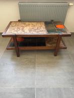 Petite table basse de salon vintage longueur 98 cm largeur 60,5 cm hauteur 43 cm les plaques sont démontables. Une des plaques du dessus a été réparée. Comme sur les photos. Il faudra venir la cherche