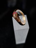 Vends très jolie bague en or jaune 18 carats (0.750Mm) sertie d’un petit rubis et de beaux 6 brillants. Neuve jamais portee mesure