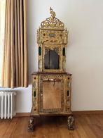 Antiek boeddhistisch altaar, mandalay-stijl uit een klooster in myanmar (19e eeuw). Houten altaarkast bekleed met bladgoud. Moet dringend weg wegens verhuis. Gekocht voor 2800 euro.