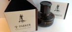 Je vends, de ma collection personnelle, un flacon d'encre de la marque parker, production 'penman', teinte noire 'ebony' encre produite entre 1993 et 2000 et indisponible à la vent