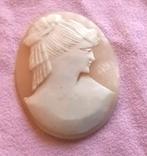 Deux anciens camées en coquillage véritable, représentant l'un un visage de femme et l'autre de jeune fille. Excellent état dimensions 4 cm x 3 cm