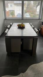 Belle table à manger qui vient de recevoir une toute nouvelle couche de vernis. À La position la plus petite : 180 cm de long sur