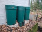 3 regenwatertonnen met elks kraantje en aan elkaar aansluitbaar. 10 Euro per stuk en 3 20 voor alle 3