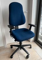 Ergonomische bureaustoel, blauwe kleur. -Armleuningen 3 d: in hoogte en breedte verstelbaar, naar voor en achter. -Rugleuning (h 6
