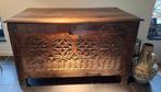Superbe coffre ancien du xviiᵉ siècle en chêne massif, d’origine française. Magnifique patine brune et détails sculptés typiques d