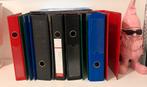 Ringmappen in verschillende kleuren te koop als bundel. Enkele zijn groot en anderen zijn "normaal" qua breedte. Nog ove