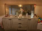 Dressoir kast met spiegel + tafel en 6 stoelen kast: 2m15 x 85 x 50 tafel: 1m 80x 95 x 76 graag nog €400 of een goed bod