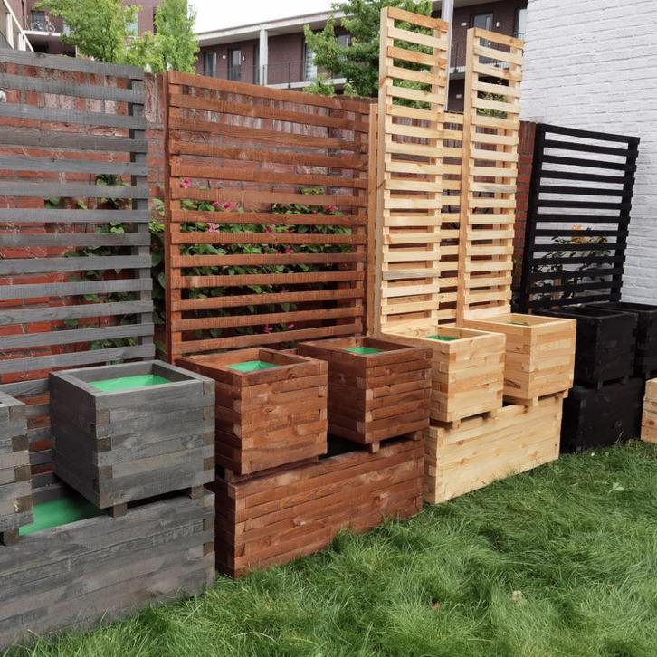 Nous fabriquons différentes jardinières carrées pour votre jardin à partir de poutres robustes de 4,5 cm x 4,5 m d'épaisseur. Tailles disponibles : 40x40x40, 45x45x45, 50x50x50, 60x60x60, 70x70x70