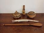 Lot d objets du congo - longueur crocodile 48cm - diamètre 4cm - queue du crocodile recollée - un couvercle d une vannerie abîmé s