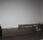 Modern tv meubel in lengte verstelbaar (bovenste deel met glazen onderplaat staat los op onderste deel)