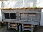 Heel zwaar hok, gemaakt uit duurzaam hout en degelijke materialen. Bodem in dikke betonplex !! Het hout in het 2de gedeelte kan eraf gehaald worden. Er is ook gaas voorzien zoals bij het eerste gedeel