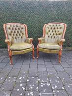 Set van 2 vintage lederen fauteuils – groen leder authentieke set van twee vintage fauteuils in groen leder met mooie, natuurlijke