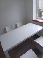Table à manger avec finition mélaminée blanche. Je vends cette table par manque de place. Dimensions : 90 x 180 cm épaisseur du plateau : 6 cm pieds carrés : 8 cm le dessous est renforcé par un cadre