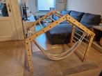Van upafamily. Kan veranderd worden in 2 klimdriehoeken. Makkelijk af te breken en terug in elkaar te steken. Vlek op hangmat die er niet uitgaat.