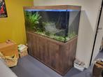 Aquarium in bijna nieuwstaat met meubel. Geen krassen op het glas. In line water verwarmer, en externe filter van aquatlantis (cleansys pro 1800) originele led lampen en bluetooth controller. Vissen z