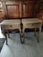 Bijzettafeltjes (2 stuks) : 0,50 m l x 0,34 b x 0,67 h side table : 1,420 m l x 0,70 m b x 0,80 m h dezelfde uitvoering in eik, lichte grey wash. Doe een eerlijk bod !