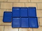 Blauwe, plastic bakjes om kleine spulletjes in op te bergen. Van 1 bakje is een hoekje beschadigd (zie foto). De bakjes zijn gebruikt, maar kunnen nog een rondje mee. Rookvrije omgeving. Afmetingen: -