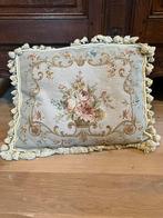 Gevuld sierkussen, gekocht bij gutman in hasselt. Afmeting: 52cm x 42cm (zonder flosjes). Achterzijde: fluweel aankoopprijs: €200 enkele plekjes op de achterzijde.
