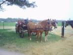 Koets met houten spaakwielen, voorzien van een prima vering en handrem en kan zowel gebruikt worden met enkel als met dubbel span. In de open koets is er plaats voor 4 personen + 2 op de bok. Mits ove