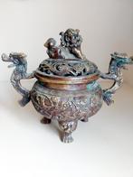 Brûle-encens ancien chinois avec chien ennemi, bronze