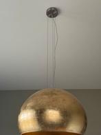 Afmetingen: 50cm op het breedste van de ronding. De opening onderaan is 44 cm breed. Gouden glazen hanglamp. De lengte van de kabe