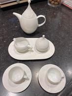 Tres joli service en porcelaine blanche de la marque rosenthal au motif travaillé ‘ joueur de flûte’ zauberflöte, service miniature pour 2 personnes -1 plateau en porcelaine travaillée motif joueur de