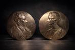 Paire exceptionnelle de plaques royales en bronze – alf. Mauquoy – léopold iii & reine astrid – ø 41 cm je propose à la vente